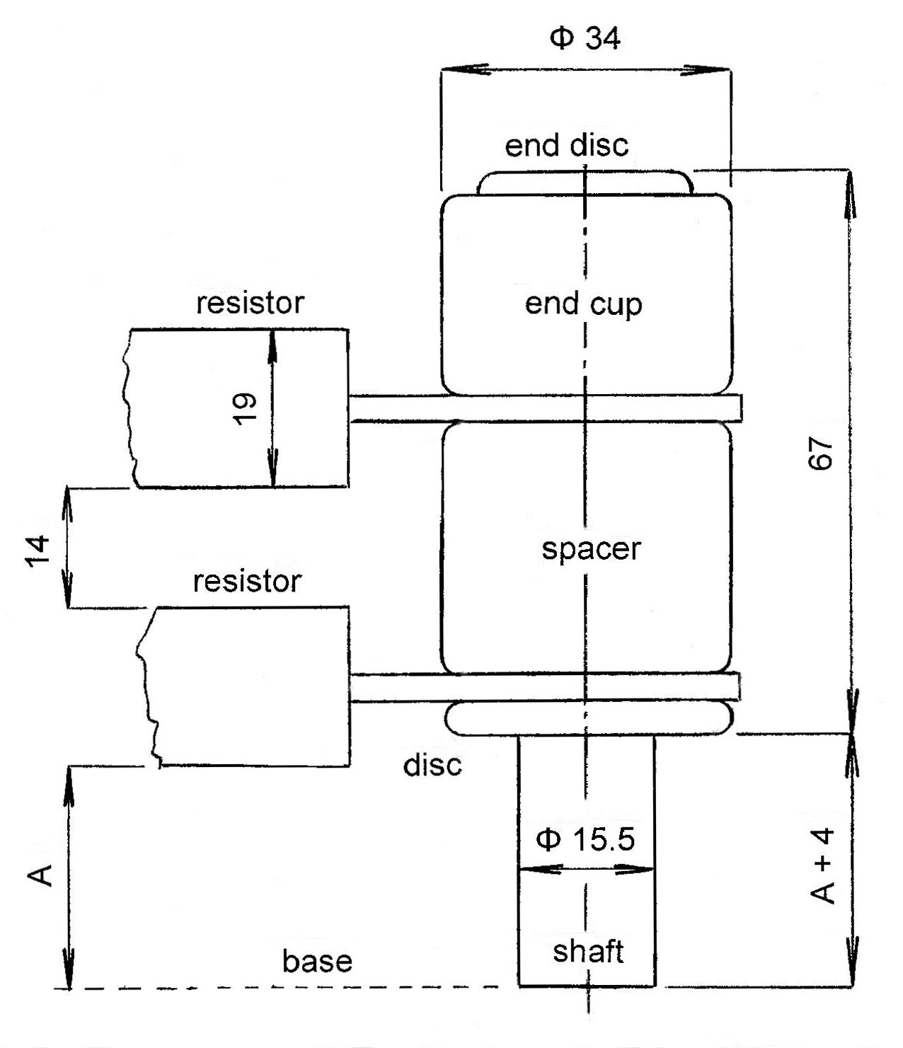 Four resistors in series can be mounted with two in parallel. A shorting bar with the slots on either end could be inserted instead of a resistor. (Same slots as on the resistor)